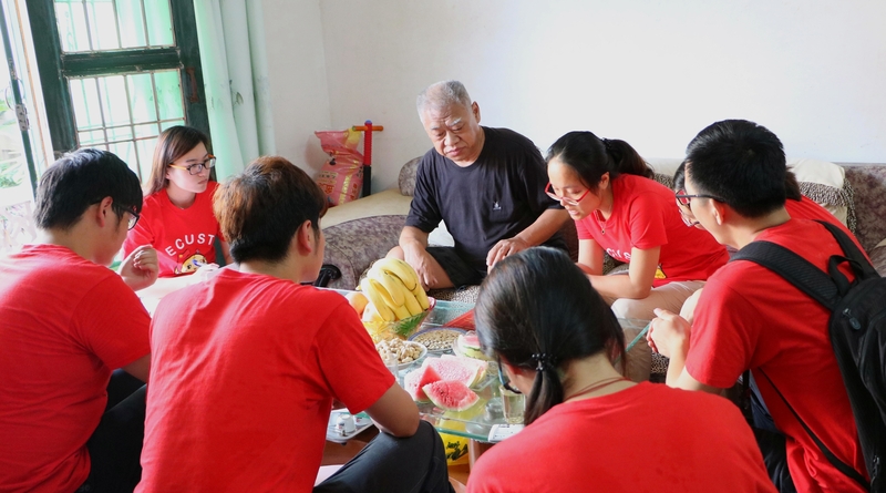 在中国工农红军之中央红军开始长征的集结地和出发地——于都,冒着烈日炎炎,顾不上一路上的舟车劳顿,实践团队直奔老红军后人的住所进行走访。老红军钟明的儿子钟建平先生动情地讲述了父亲一生献身革命事业的英勇事迹,并寄语老员工们不忘革命先辈用鲜血换来的和平,用心学习、认真做人,尽最大努力回报祖国和社会。生工师生们有幸得以翻阅了钟明老先生珍藏的相册,黑白相片重现了时光深处那段宝贵的记忆。当年英姿飒爽的战士有多少人毅然为了革命理想为国捐躯?又有多少人刚走出戎马征程即可担起建设新中国的重任?一张张拍摄于前线后方、定格于一九四九年前后的历史照片以无声的语言带给师生们冲击内心的震撼,更坚定了继承红色基因,弘扬长征精神的决心。