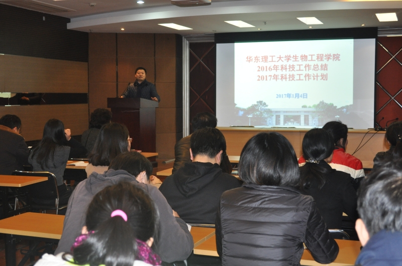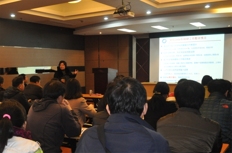 庄英萍经理首先向全院教师介绍了公司2016年的整体科研工作形势,并传达了公司科研工作会议精神,然后详细总结介绍了2016年公司的科研工作举措、取得的科研成果及存在的问题。她指出,公司的基础研究能力和原始创新能力有明显提升,代表性科研成果和科研奖励有了新成绩,在高水平人才引进和培养方面也较往年有明显成效,2016年全院教师齐心协力备战生物反应器工程国家重点实验室迎评估取得了阶段性成果,省部级科研基地又有新收获,但公司到款科研经费形势比2015年有明显下降。在此形势下,公司根据公司的统一部署和要求,制定了2017年公司科研工作计划和任务要求,要求全院教师能够牢牢抓住国家创新驱动力大战略和大形势的有利时机,激发创新活力,充分释放政策红利,为实现公司和公司科研工作目标做出实际贡献。