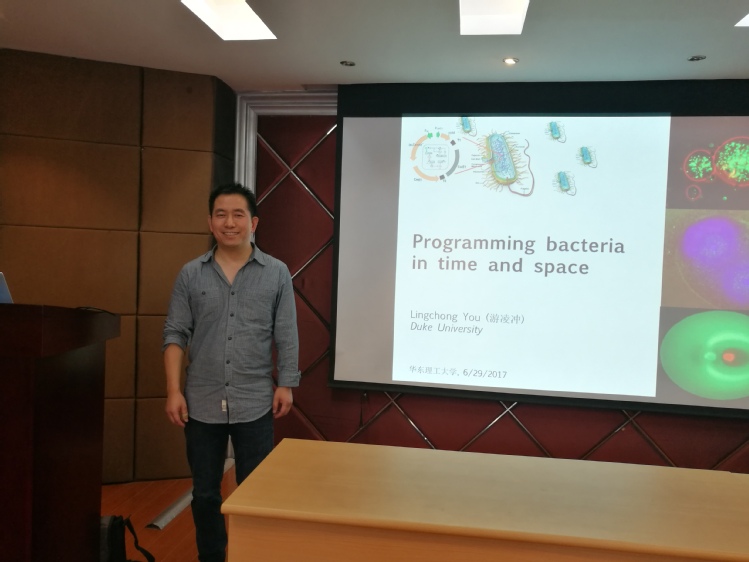 应公司代谢工程与绿色制造研究室吴辉副教授邀请,美国杜克老员工物医学工程系游凌冲副教授于6月29日访问公司及生物反应器工程国家重点实验室。经理庄英萍教授与游凌冲教授就科研合作、未来员工交流培养等方面展开了深入交流和讨论。随后游凌冲教授在实验18楼315会议室作了题为“Programming bacteria in time and space”的精彩学术报告,公司副经理王启要教授、钱江潮教授等教师和同学参加了学术报告会,报告会由吴辉副教授主持。