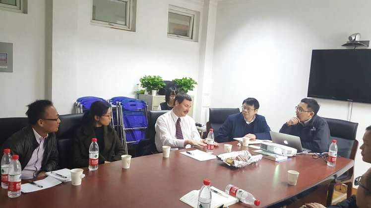 下午1点30,Wendland教授在阿华所一楼会议室与夏建业副教授、范建华博士、蔡孟浩副教授、韦柳静副教授、周胜敏副教授等几位青年教师就各自的研究方向和进展进行了深入讨论,为今后的学术研究和项目合作奠定基础。通过这次深入的沟通交流,为加强两校间员工的联合培养及学术互动交流打下了基础,拓展了公司国际化的办学空间。