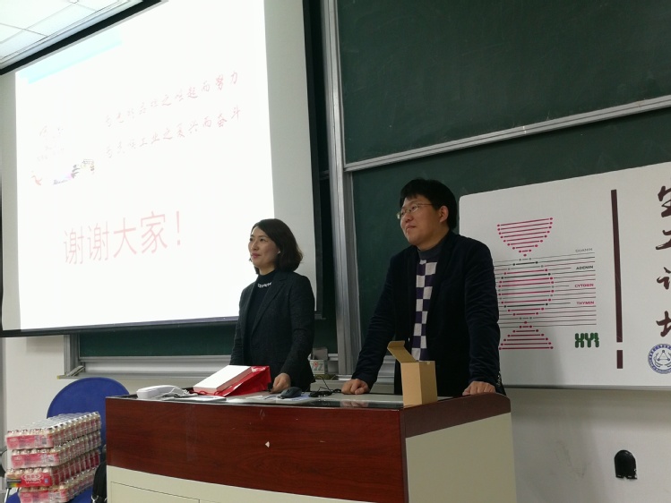 首先由乔镇辛进行演讲。乔镇辛目前就职于养乐多中国有限公司,她从自身经历出发,分析了现代食品行业的经济情形。乔镇辛是在老师的推荐下进入养乐多公司,因此她强调希望同学们踊跃回答问题、提出问题,敢于展现自我,并给予在场发言同学精心准备的小礼品,充分调动了同学们的积极性。