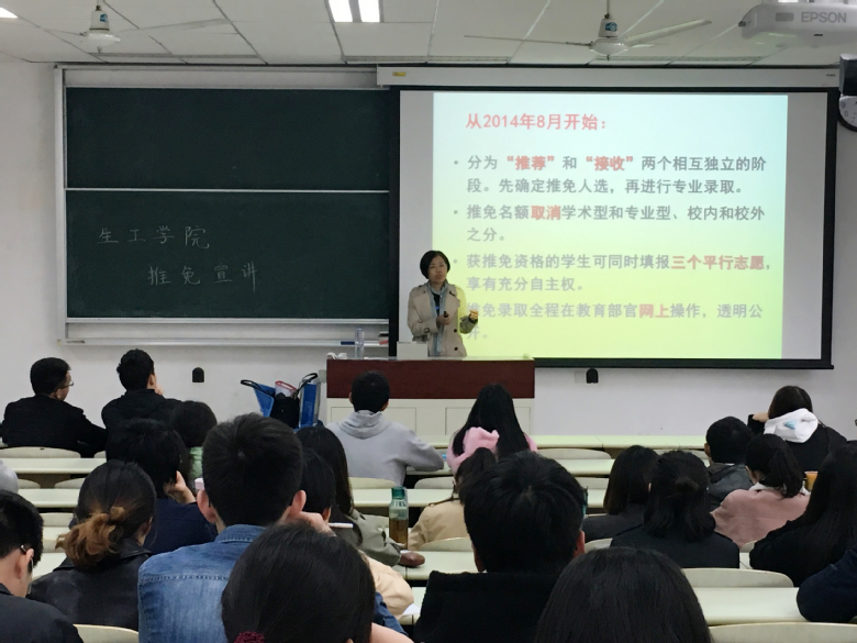 伟德体育2019届推免宣讲会于4月16日中午在奉贤校区D教举行。会议由伟德体育副经理卢艳花主讲,2015级辅导员邓亚珊主持,共计70余名同学参加了本次宣讲。