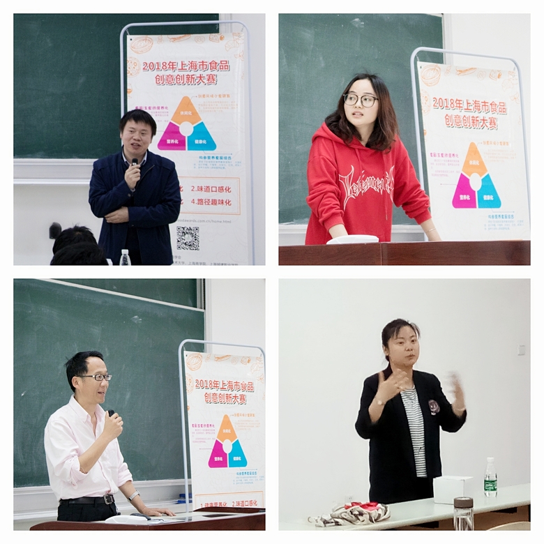 2018年4月20日下午,首届上海市食品创意创新大赛宣讲会在奉贤校区A205教室举行。伟德体育副经理王启要教授、食品系主任周英副教授、上海食品学会的郭燕茹老师、上海清美绿色食品有限公司的袁辉工程师以及公司近60位员工出席了此次会议。