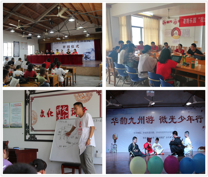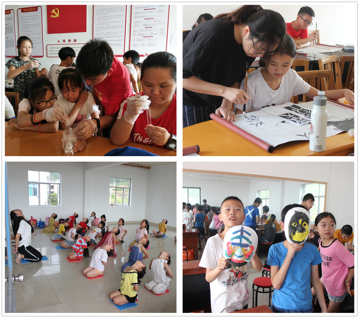 本次实践活动以“弘扬传统文化,服务乡村振兴”为主题,“微光课堂”团队的员工们精心设计了“品读诸子百家、遨游礼乐书数、传承红色经典、探索天台文化、创造健康生活”五大板块课程,涉及书画艺术、习俗礼仪、爱国故事、历史地理、文学著作、地域文化、体育健康等课程,并结合专业特长开设了趣味生物学、食品营养安全、污染防治与处理等知识课堂。为了提升留守孩子们的学习兴趣、邀请家长们参与互动,支教团队还组织了亲子运动会、科普知识抢答赛、垃圾分类辩论赛和“给月熊一个家”关爱濒危动物主题课,最终以一场精彩的“华韵九州游·微光少年行”文艺汇演向村里百姓们展示了本次实践活动成果。实践团成员和暑期乐园的学员们在舞台上一一展现了历史剧《鸿门宴》、舞蹈《霍元甲》、歌曲《说唱脸谱》等节目,得到了现场观众的阵阵掌声,有效传播了传统文化的魅力,为乡村振兴背景下进一步树立文化自信做出了贡献。