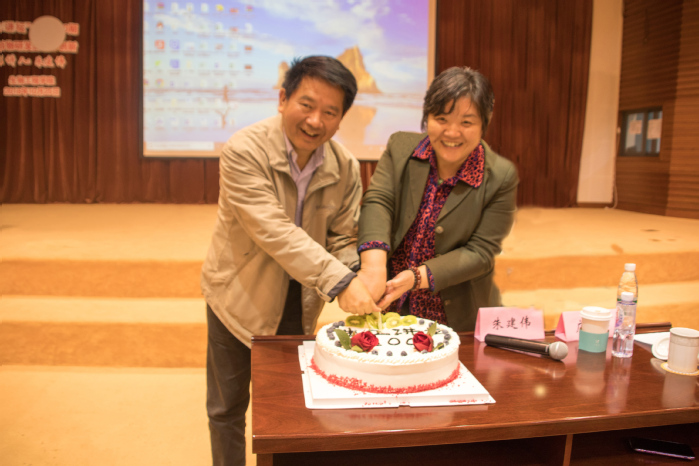 在互动提问,员工们就生物科学、生物技术、生物工程等专业在生物制药中的应用以及生物药物如何治疗基因遗传病等疑惑进行了咨询,也得到了朱建伟的耐心解答。讲座尾声,庄英萍邀请朱建伟共同切开了祝福华理生日快乐与生工讲坛100期圆满举办的蛋糕,并分享给了现场员工们。朱建伟再次表达了殷切的期盼,希望学弟学妹们能在大学时光刻骨学习、勤奋求实、收获真知,培养能力,进一步传承并发扬华理精神。