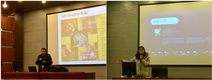 首要邀请陈继章做实验室安全教育的讲座。陈老师用幽默的语言和视频案例,讲解了实验室常见危险试剂的使用和存放问题,以及开展实验时应注意的细节和防范措施。他告诫员工实验前务必搞清实验的每一步骤,了解并做好相应的防护和应急措施,提醒员工化学品安全技术说明书(MSDS)的重要性,特别指出在实验过程中要“安全卫生,从心做起”。整个讲座内容丰富、讲解生动,员工们反响热烈、纷纷表示受益匪浅。