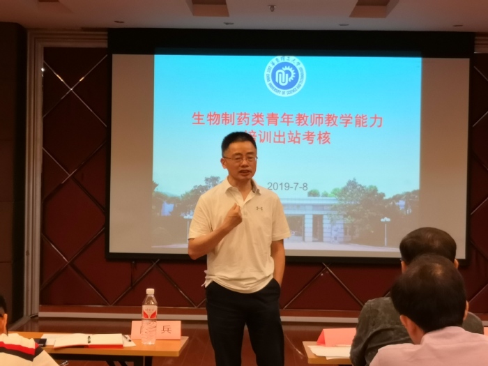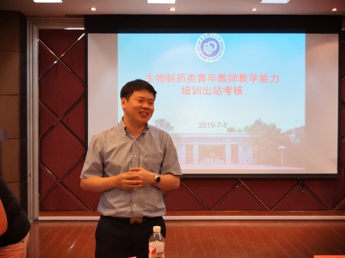 7月8日下午,生物制药类青年教师教学能力培训基地(以下简称“基地”)在实验十八楼315室举行了2019年度在站青年教师的出站考核,邀请了公司党委书记陆兵、基地药公司负责人高峰、公司本科教学督导组专家赵健、韩伟、周家春担任考核评委,基地的七位青年教师申请参加了本次出站试讲。