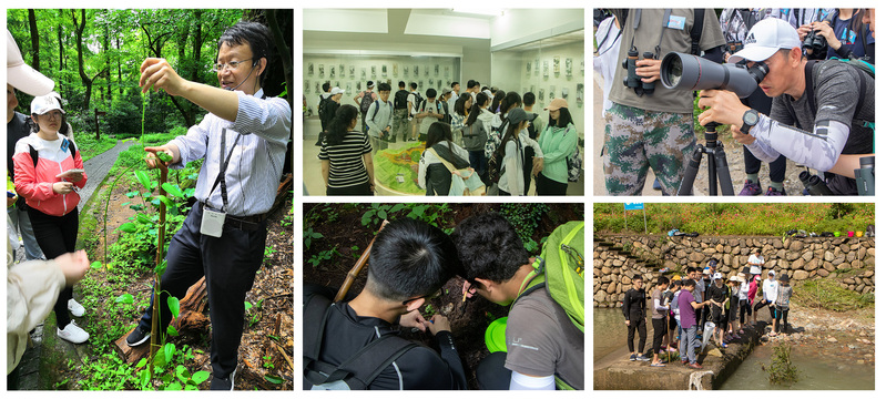 研究禽鸟生境,远眺振翅风姿。晨光熹微,山峦刚刚睁开雾气缭绕的眼睛,山林里早已有“鸟雀呼晴,侵晓窥檐语”。观鸟组的杨志栋和高淑红两位老师带领同学们背着望远镜,踏上了清晨铺满薄雾的山路,去观察这些可爱的小生命:蓝羽艳丽,静伫枝头的三宝鸟;尾若赤焰,衔水而过的红尾水鸲;头挤巢口,嗷嗷待哺的烟腹毛脚燕;群起而飞,橙黄交错的灰喉山椒鸟……一一进入我们的视野。归时,同学们已熟知三十余种鸟类的名字、特征、叫声及生活习性,同时对观鸟产生了极大的兴趣。此情此景,正所谓“树林阴翳,鸣声上下,游人去而禽鸟乐也,然而禽鸟知山林之乐,而不知人之乐。”