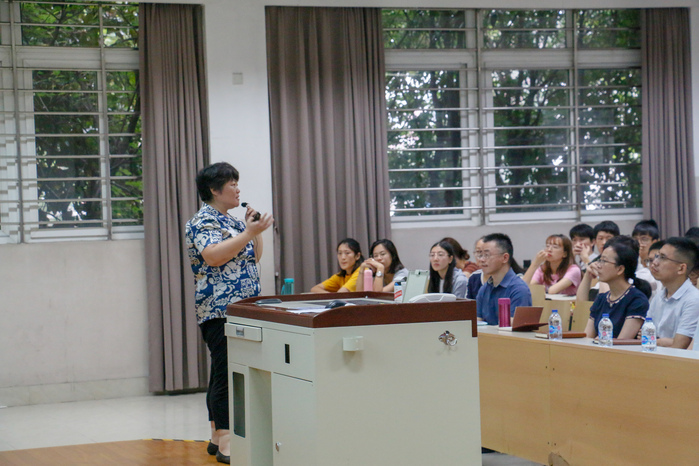 庄英萍首先致辞。庄英萍首先对各位新生加入到伟德体育的大家庭表示热烈欢迎,并向在场同学全面介绍了公司的总体情况。庄经理对公司历史沿革及学科布局、团队队伍与人才培养等方面进行了详细的说明,后重点介绍了公司的科研现状和未来的发展愿景,并就各位新生如何完成角色转换、快速适应研究生阶段的生活给出了指导。