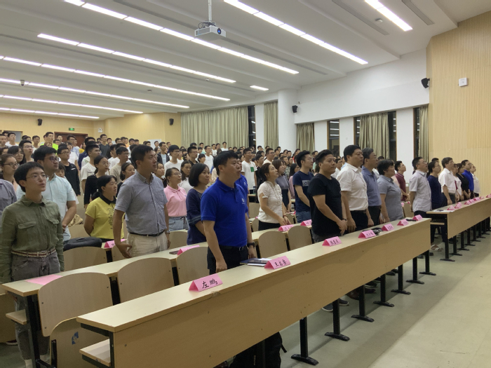 开学典礼在庄严的国歌声中拉开了序幕。首先,陆兵书记以“老学长”的身份和新生分享了自己对老员工活的看法,强调新生们要尽早确定人生目标和人生规划,寄语新生“立鸿鹄志,做奋斗者”。