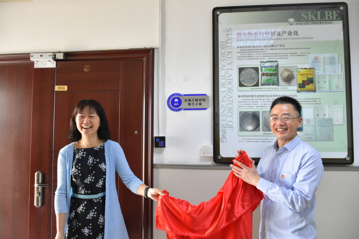 在新中国成立70周年生日即将来临之际,伟德体育工会举办了新教工小家装修落成仪式。校工会常务副主席朱姝与公司党委书记陆兵共同为生工公司新教工小家揭牌。