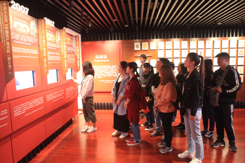在二大会址,同学们首先在序厅观看了二大纪录片,再一次学习中共二大在中国共产党发展史上的重要地位和意义。随后在团委老师的讲解下,依次参观了中共二大展厅、党章历程展厅、二大会议旧址、平民女校旧址等五个展厅,瞻仰了300余件珍贵史料,那段光辉历史;通过人机互动技术,在珍贵的影像、图文、实物资料所营造的浓浓历史氛围中,学习了解党章及其发展历程,感受中国共产党创建初期的峥嵘岁月和之后的不断蓬勃发展。