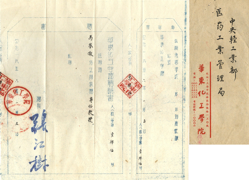 19560105华东化工公司张江树经理签发的聘马誉澂为公司专任教授的聘书