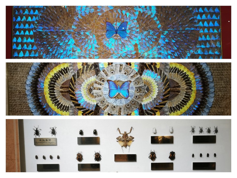 游隧道,看古今,赏标本,观活体。穿过博物馆中演绎着昆虫的产生与进化历程的生命隧道,通过古今对比学习了昆虫的历史及差异。到达标本展示厅,昆虫的结构及特征在精巧的标本中一览无遗,闪耀的蝴蝶翅膀标本拼接画美轮美奂。在讲解员的介绍下学会从习性、触角、翅膀等方面辨别蝴蝶与飞蛾,最后还见到了伪装大师竹节虫、歌唱家蝈蝈和懒洋洋的桑蚕。