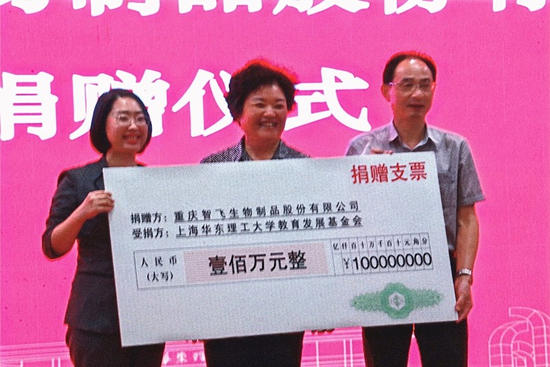 近日,重庆智飞生物制品股份有限公司(以下简称“智飞生物”)捐赠仪式在公司奉贤校区通海厅举行。公司党委常委、副董事长李涛,智飞生物党委副书记、副总裁谢莉等出席活动,捐赠仪式由伟德体育经理庄英萍主持。