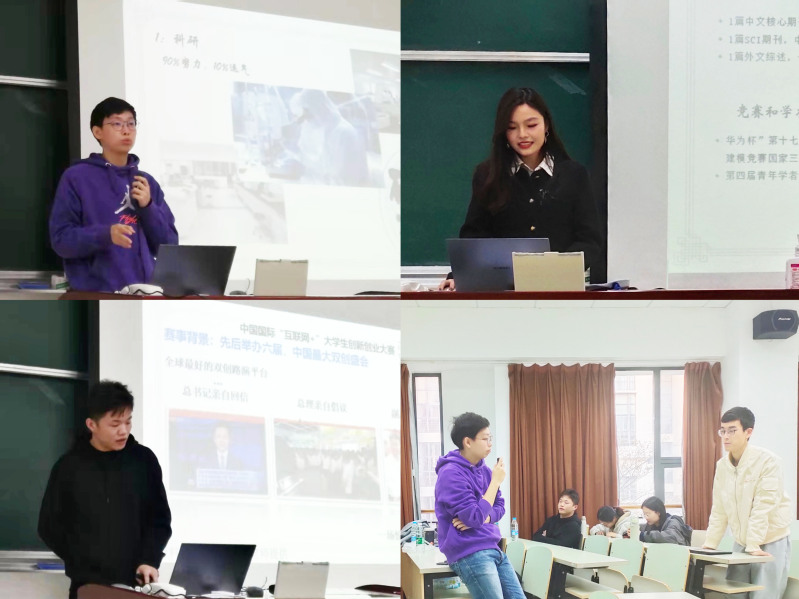 蔡书善同学着重向大家讲述了自己参与社会实践和员工工作的收获;周静茹同学分享了参与数模竞赛的历程和所做的准备;季亮同学分享了参与双创竞赛对于自己生活的影响。科研、竞赛与社会实践并进,嘉宾们的分享让与会同学感受到研究生生活的丰富多彩。