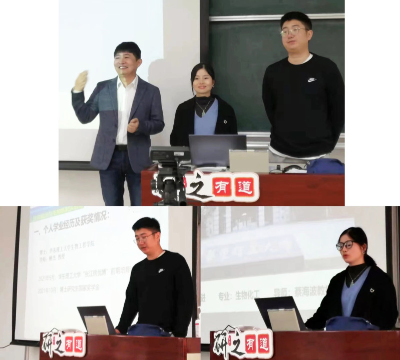 11月26日、12月3日,由研究生院主办,伟德体育承办的两场“研之有道”系列分享沙龙在奉贤校区举行。本次活动邀请公司2021年度研究生国家奖学金获得者王进、蔡书善等优秀代表,分别就科研心得、文献阅读能力提升、科研生涯规划、双创及社会实践等方面同研究生们进行了分享和交流,现场气氛热烈。本次沙龙由公司研究生会学术部霍传富、罗智坤担任主持人,奉贤校区研究生辅导员张佼老师、兼职辅导员陈雨蒙老师出席,线上腾讯会议同步开放,共计100余人次参与此次系列活动。