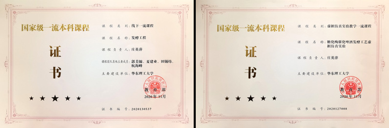 团队紧跟国内外生物制造产业发展和前沿技术需求,秉承“教学-科研-创新”协同育人理念,承担本科生《发酵工程》、《生物反应工程原理(全英文)》等6门专业必修课程以及研究生《生物反应器工程》、《生物反应工程(全英文)》等3门专业核心课程。2020年,《发酵工程》获批国家首批一流本科线下课程。近五年,团队教师主持教育部新工科专业教改项目2项,国家和上海市虚拟仿真项目各1项,同时作为校教学名师培育团队,主持校研究生课程思政教改和本科公司产品方法改革项目各1项。获上海市教学成果二等奖1项,校教学成果特等奖、一等奖、二等奖共5项,发表包括SCI在内的教学教改论文近10篇。