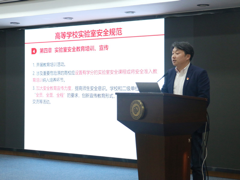 吴辉带领全院教师学习《高等公司实验室安全规范》。吴辉逐条解读了文件主要章节,主要包括实验室安全责任体系,实验室安全管理制度,实验室安全教育培训、宣传,实验室教学、科研活动安全准入制度,实验室安全条件保障,实验室危险化学品安全管理等内容。他结合公司实验室安全专项巡察组的反馈意见,要求各个实验室、课题组安全责任人加强组内安全教育培训,加强警示教育,提高师生安全意识,增强师生防范化解安全风险的能力。