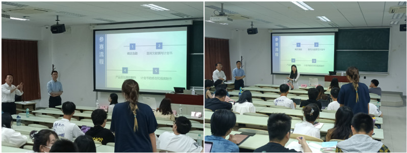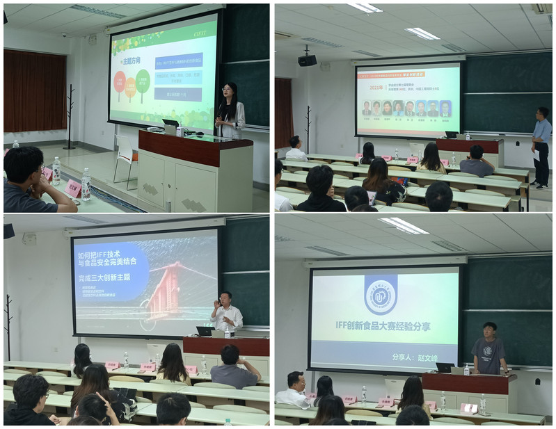 但晓雅代表中国食品科学技术学会向师生介绍了此次创新大赛的比赛规则、主题方向、参赛队伍组成、方案书写、参赛日程、奖励以及往年优秀产品展示等,随后向师生们播放了本次大赛的宣讲视频。李晴辉从IFF的发展历程、业务范围以及IFF在此次大赛中为参赛员工提供的配料、方案实施帮助等方面做了详尽的介绍。赵文峰针对选题、计划书撰写、包装制作、计划书修改和视频制作等方面向同学们分享参赛经验。