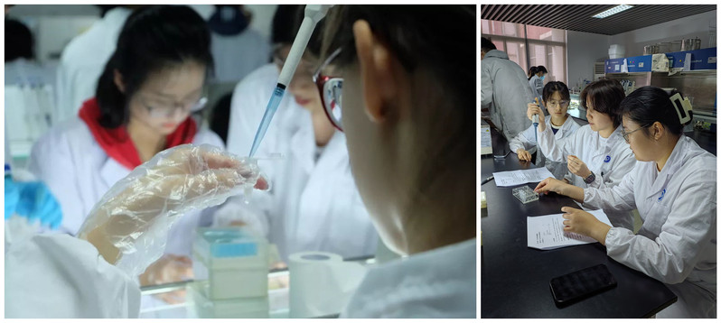复赛的实验主要分4个部分:1.通过口腔拭子法抽提基因组DNA;2.PCR扩增P53基因;3. 用MspI酶切PCR产物;4. 琼脂糖凝胶电泳鉴定PCR及酶切反应产物。每个小组成员分工合作,密切配合。实验结果出来后,应用生物学系原主任张惠展教授为每组同学的实验结果作了专业点评,为出现的各种不同的实验结果进行分析,鼓励同学们为决赛做好充分准备。通过复赛,7组共20名员工脱颖而出,顺利进入决赛环节。