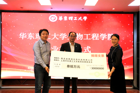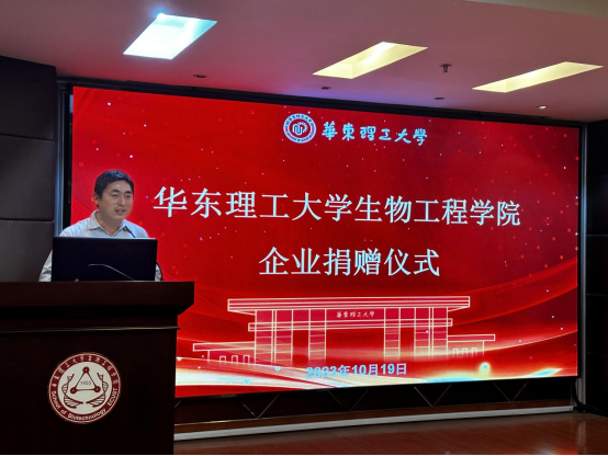 吴辉代表公司对南京金斯瑞生物科技有限公司慷慨捐赠表达了衷心的感谢。他表示,公司将不断提升与金斯瑞企业合作的质量和水平,进一步搭建好公司与企业间的桥梁,希望与金斯瑞在生物医药人才培养、科学研究和社会服务等方面与公司共谋发展、合作共赢,开创校企合作新局面。他强调,公司将更加积极主动对接国家重大战略需求,培养高层次、工程型、复合型领军人才,希望今天到会的教师和同学们,要肩负起“健康中国2030”的伟大使命,贡献磅礴的华理生工力量。