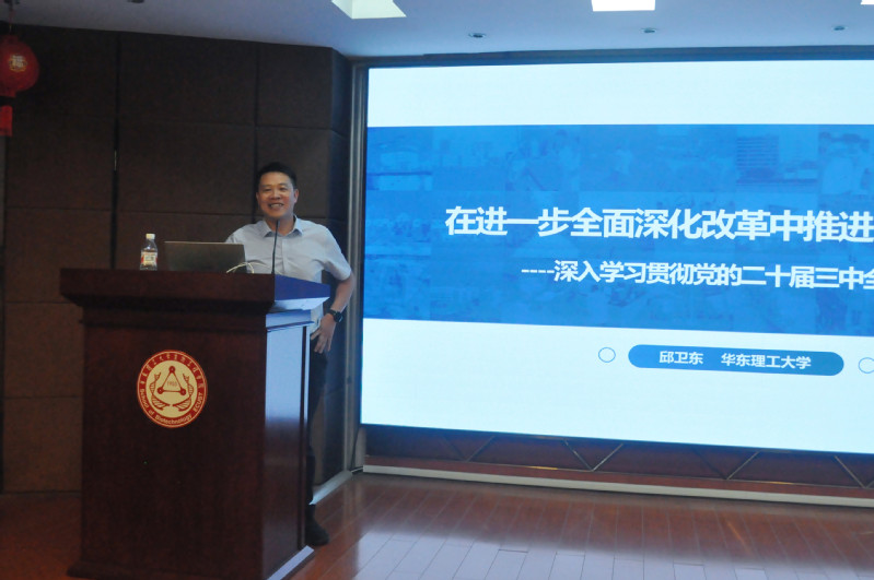 邱卫东围绕“在进一步全面深化改革中推进中国式现代化”这一鲜明主题,从“进行改革开放是决定当代中国命运关键一招”“以全面深化改革推进中国式现代化刻不容缓”“擘画进一步全面深化改革推进现代化新蓝图”“不断增强学习贯彻全会精神的思想和行动自觉”等4个方面进行系统阐述,重点对《中共中央关于进一步全面深化改革、推进中国式现代化的决定》进行系统解读,生动展现了党的二十届三中全会精神在新时代背景下的实践路径与深远意义,令与会者深受启发,收获颇丰。