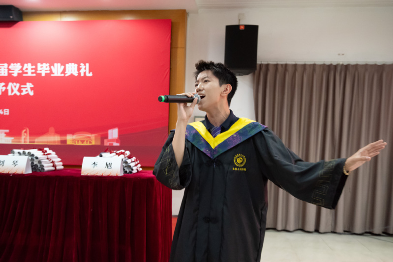 毕业典礼上,毕业生卢文升、张永杰深情献唱,道出与母校、同学们的不舍与祝愿。在悠扬的歌声中,伟德体育毕业典礼圆满结束。