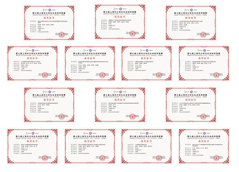 由高蓓老师指导的项目“甲醇细胞工厂的创建及其在圆柚酮合成中的应用”表现突出,荣获全国一等奖及上海市一等奖;由刘晓红老师和马悦老师联合指导的水产疫苗项目,针对浸泡接种核心痛点与关键技术瓶颈,展现了卓越的创新能力和应用价值,成果获得高度认可,最终以小组第一的成绩荣获全国一等奖;张艺蓓老师指导的课题“双组分应答调节蛋白OmpR对杀香鱼假单胞菌毒力基因的调控功能研究”同样表现优异,斩获全国二等奖与上海市一等奖。此外,周勉、范建华、朱国良、尤迪等多位教师指导的团队项目也获得了全国三等奖与市级二等奖的佳绩。